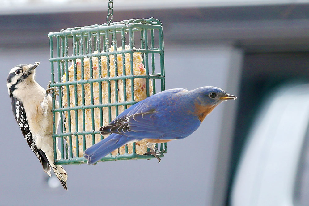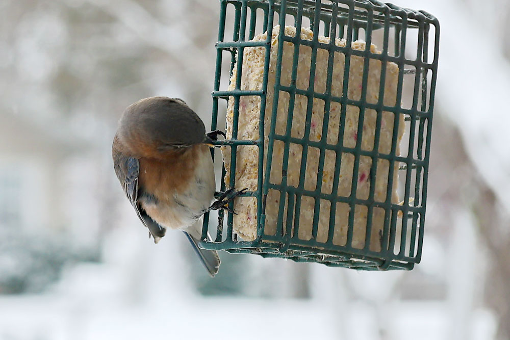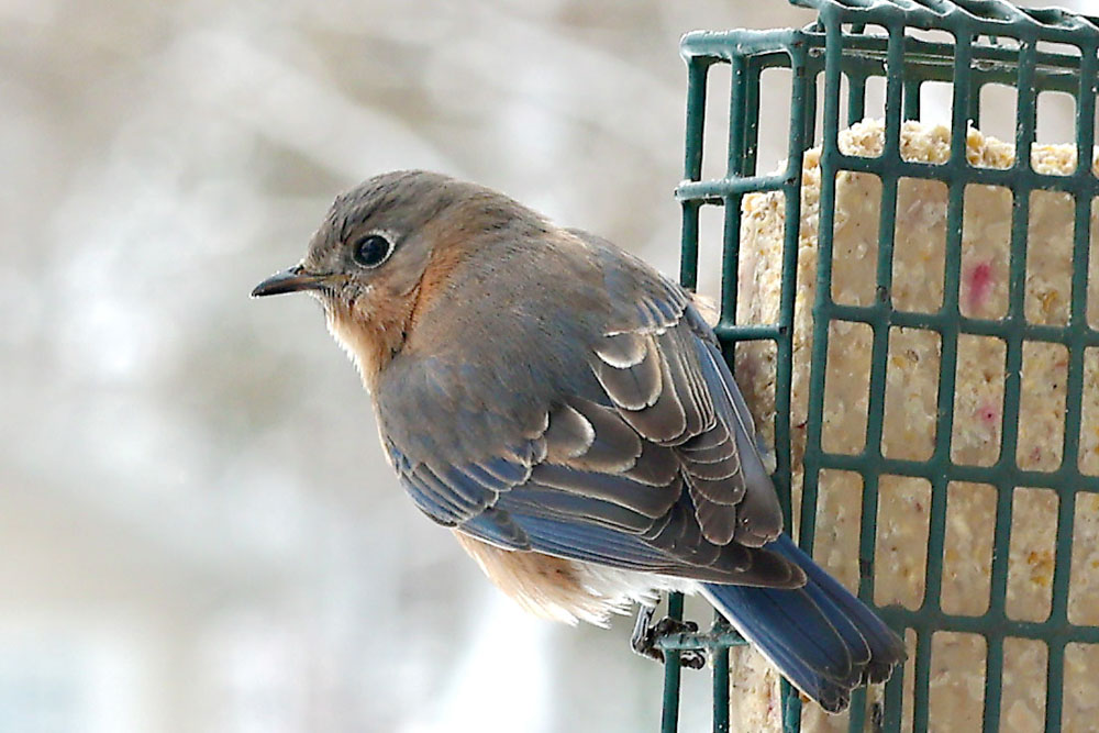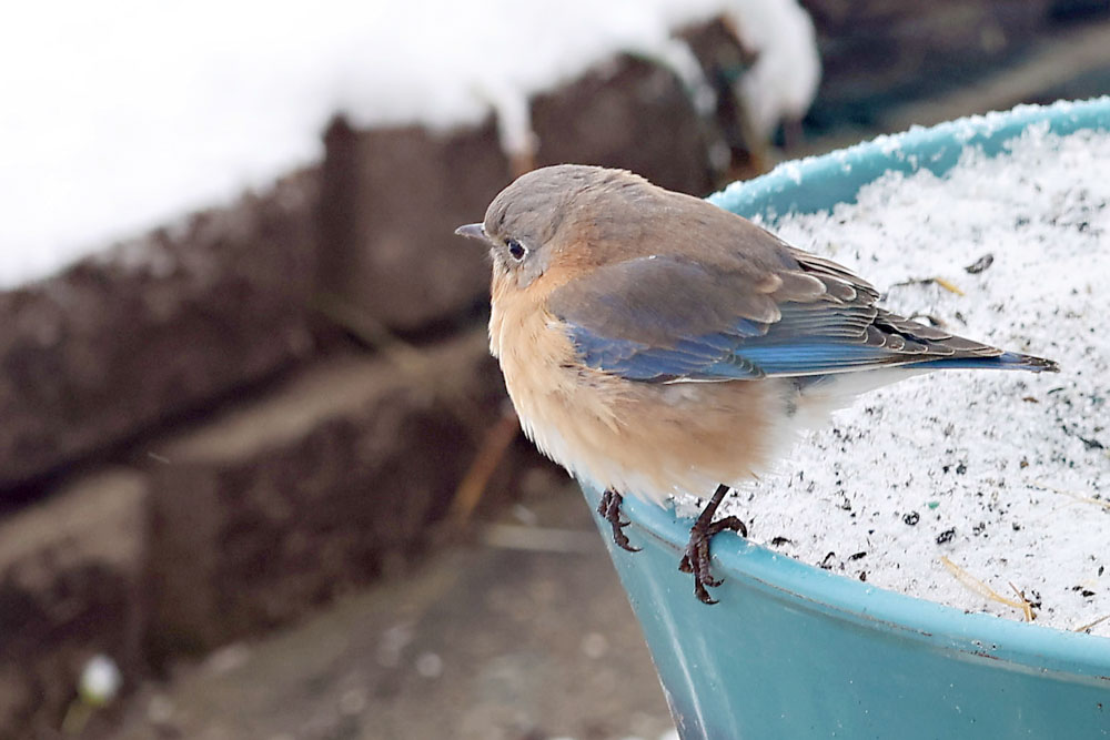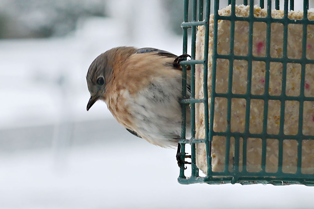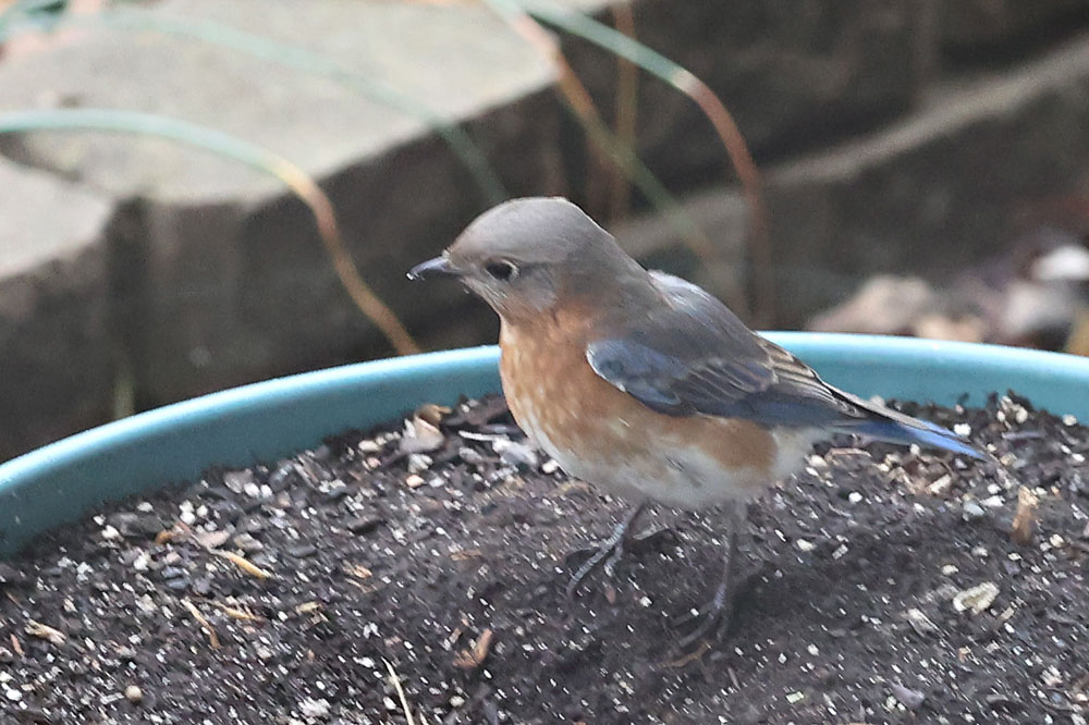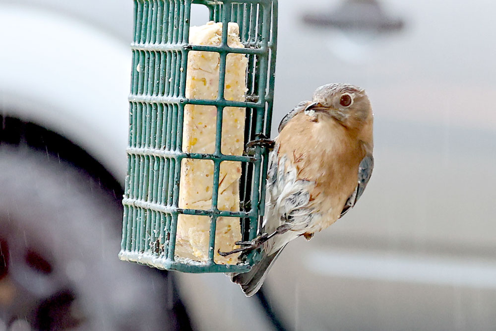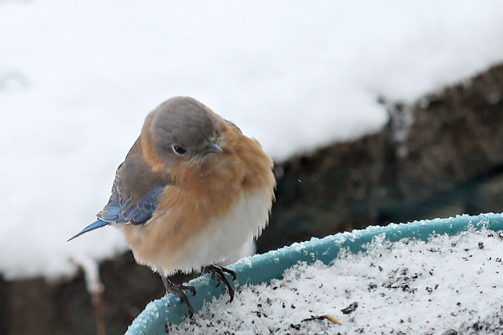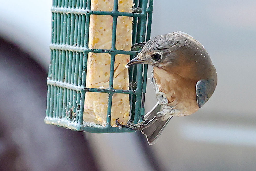 I am enjoying Winter bird watching at the window of our feeders. Who needs television? I have noted 11 types of birds and have gotten photos of all but one. I thought I would share some of the photos, one in each post. Would you enjoy that? I have had a lot of Bluebird this year than ever before. They make my heart sing, especially when I see them fluff all up and make themselves look like they have on a big fur coat. This process is called "piloerection." The bluebirds create air pockets between their feathers which insulates them from the chilly temps and cold winds. I captured photos of mommas, pappas, and the children. The whole family is here! (February 18, 2025)