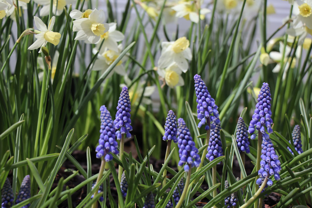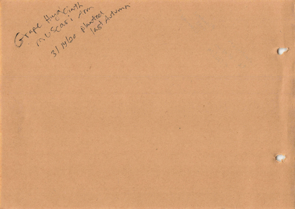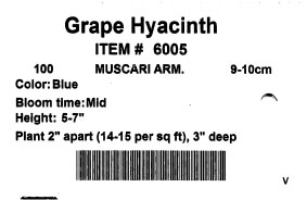 The name Muscari is from the Greek word for musk, referring to the scent. The name of "grape" is because the flowers look like small clusters of upside-down grapes. The name Armeniacum is from Armenia which is part of the flowers native area.