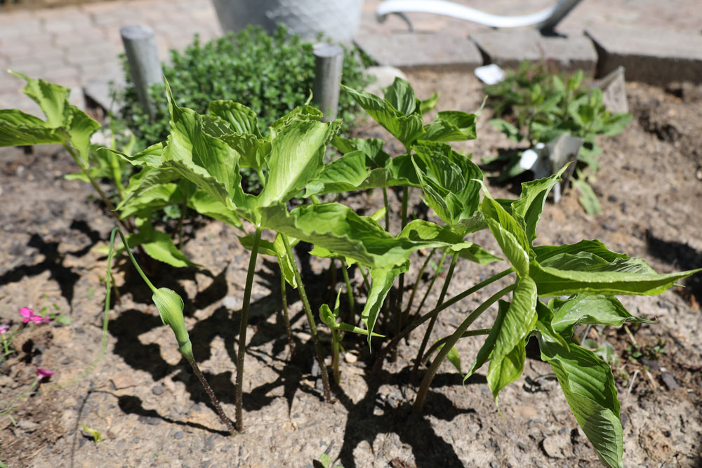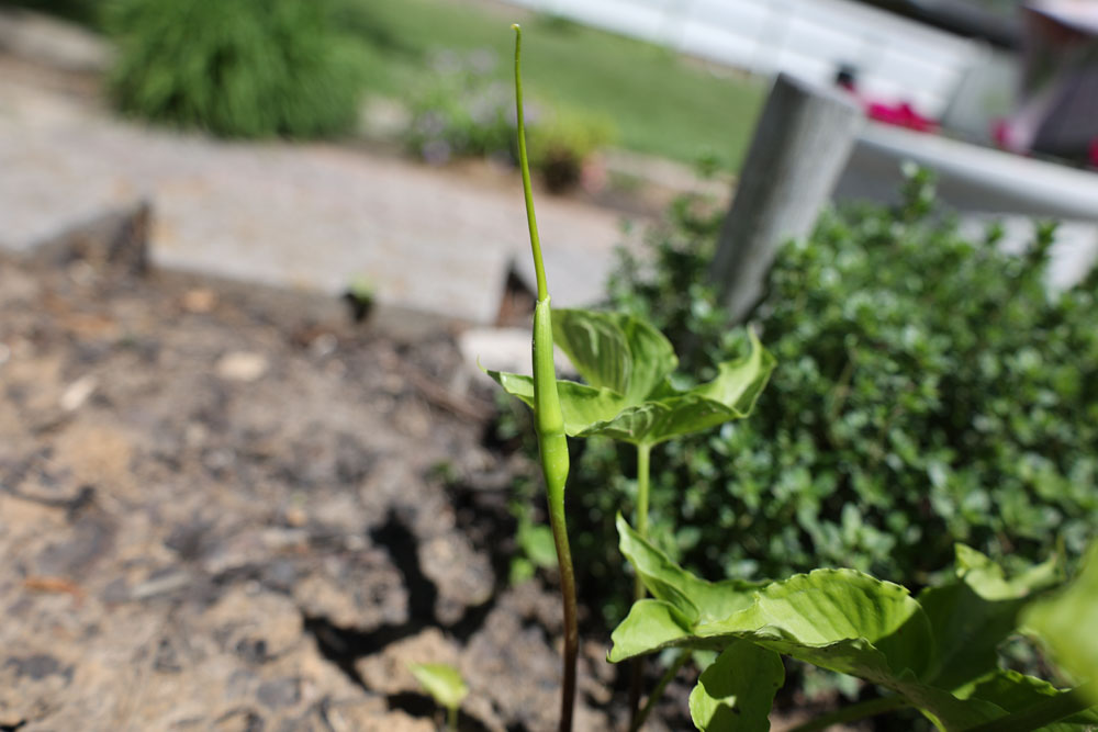 The Green dragon is in the same family as and is closely related to the Arisama | Jack-in-the-pulpit. I think that is so cool because I love seeing Jack-in-the-pulpit as a native plant along the hiking trails here in Missouri and I always thought it would be cool to have one in my own garden, so this is the next best thing.
