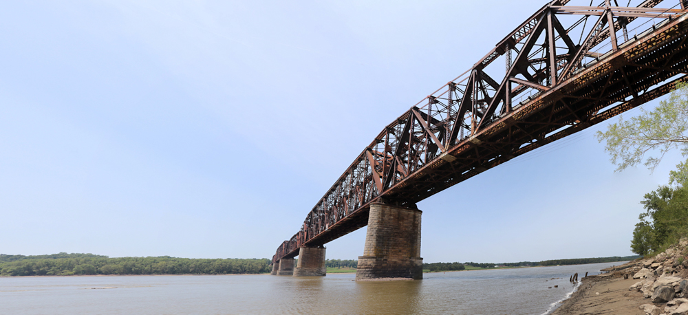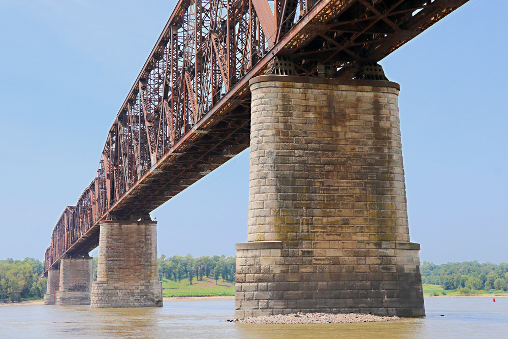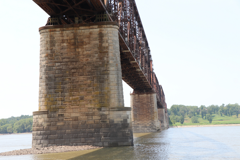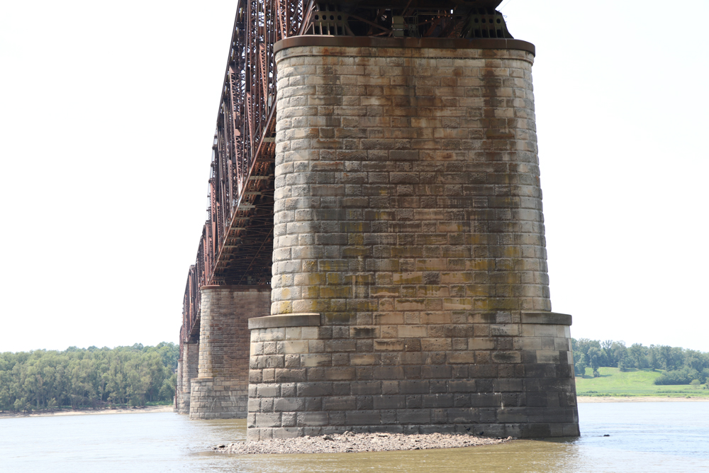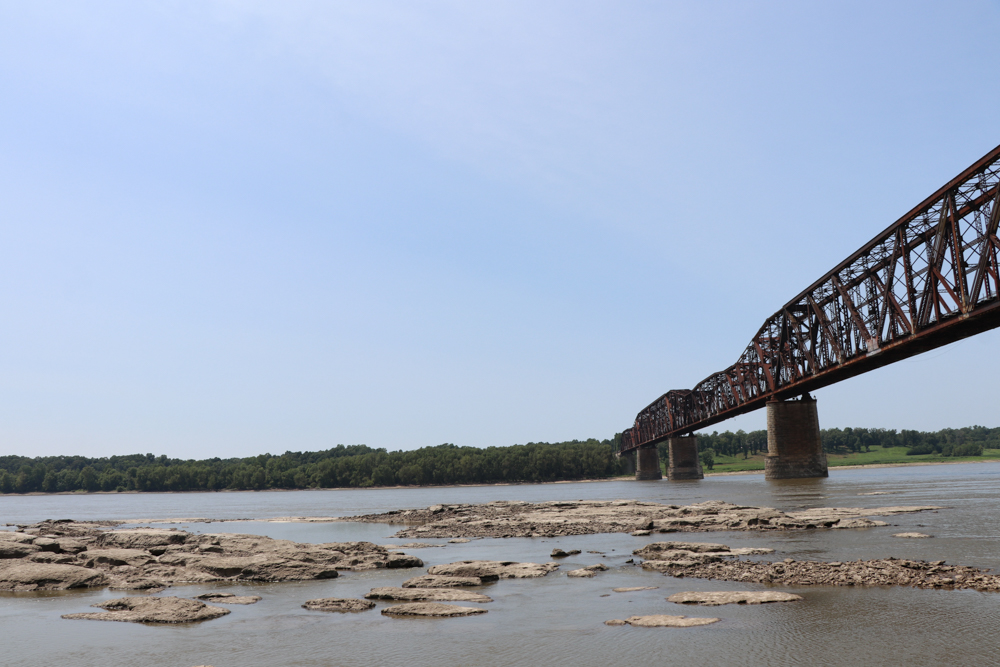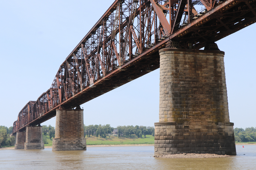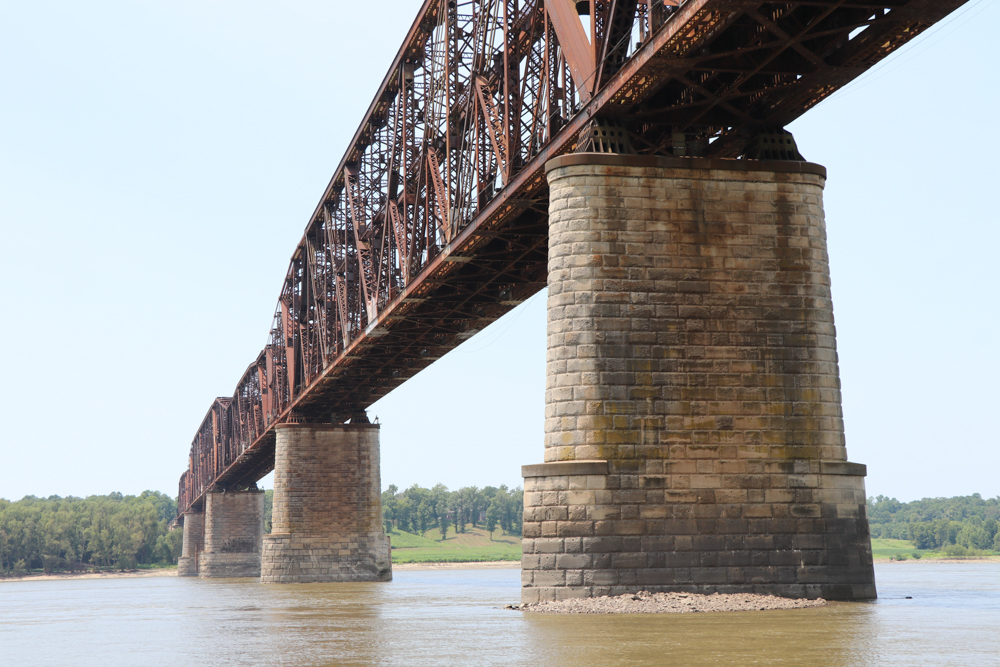 The Thebes Bridge is along the Mississippi River. Directly across from Thebes you can see the The Riverhouse wine place in Scott City, Missouri. You can sit at the winery in Missouri and watch the trains cross the bridge which is kind of awesome.