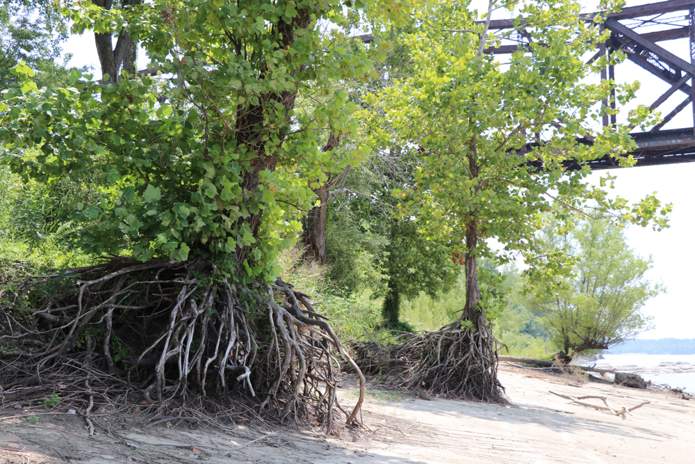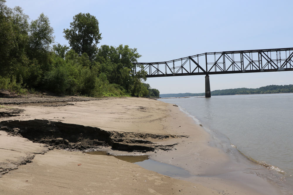 Be careful, as always, walking on the beach of the Mississippi River. Sometimes it is deceiving and water pools underneath and it could collapse in and suck you in to a vortex.