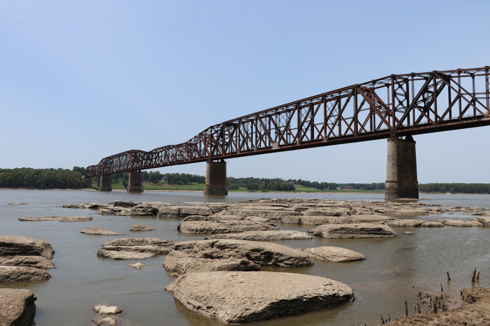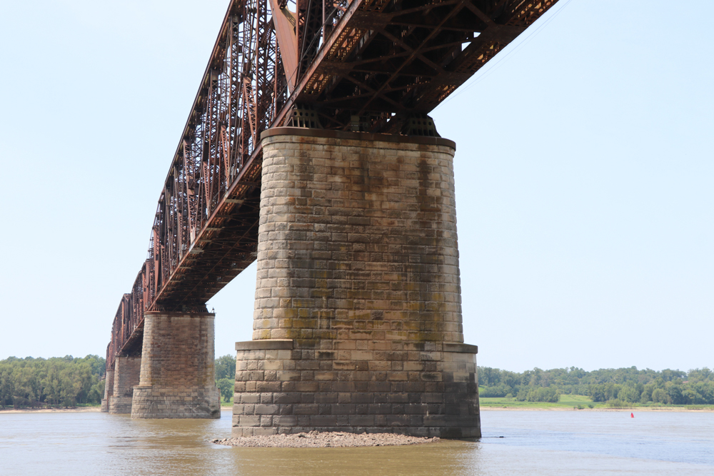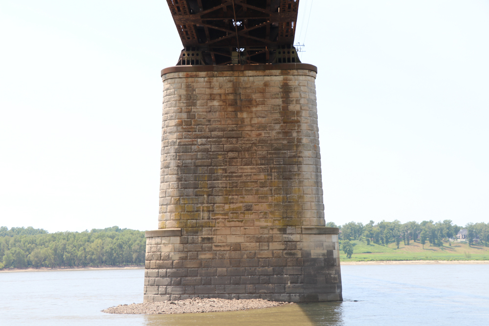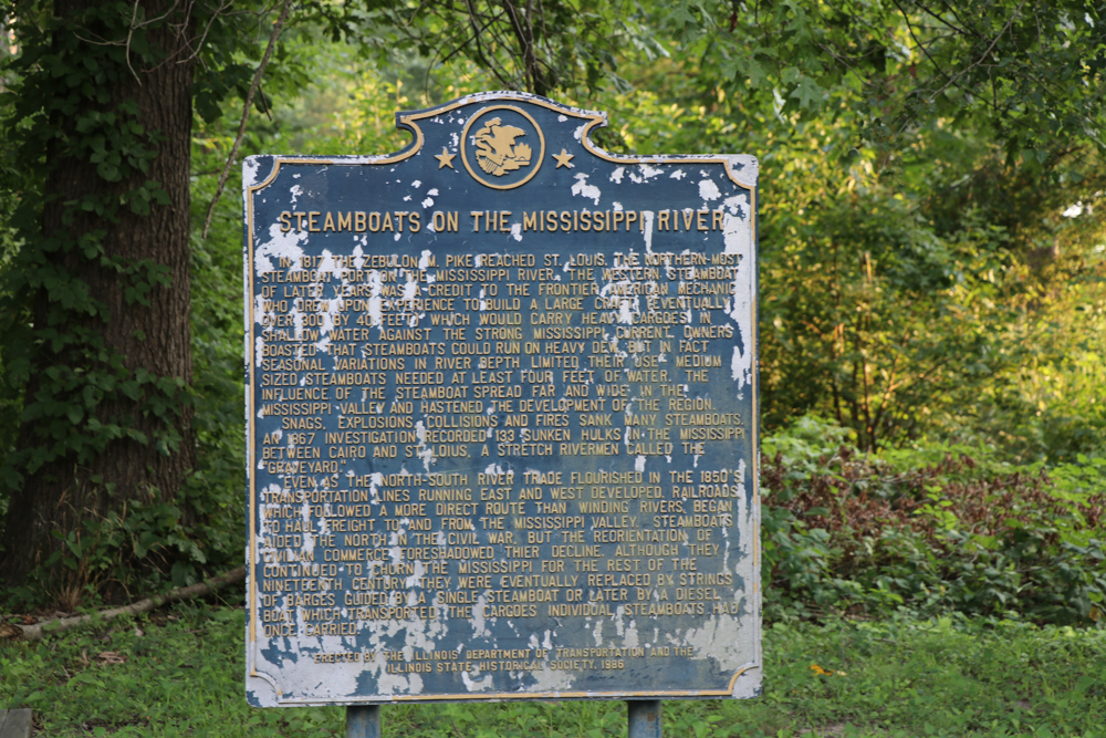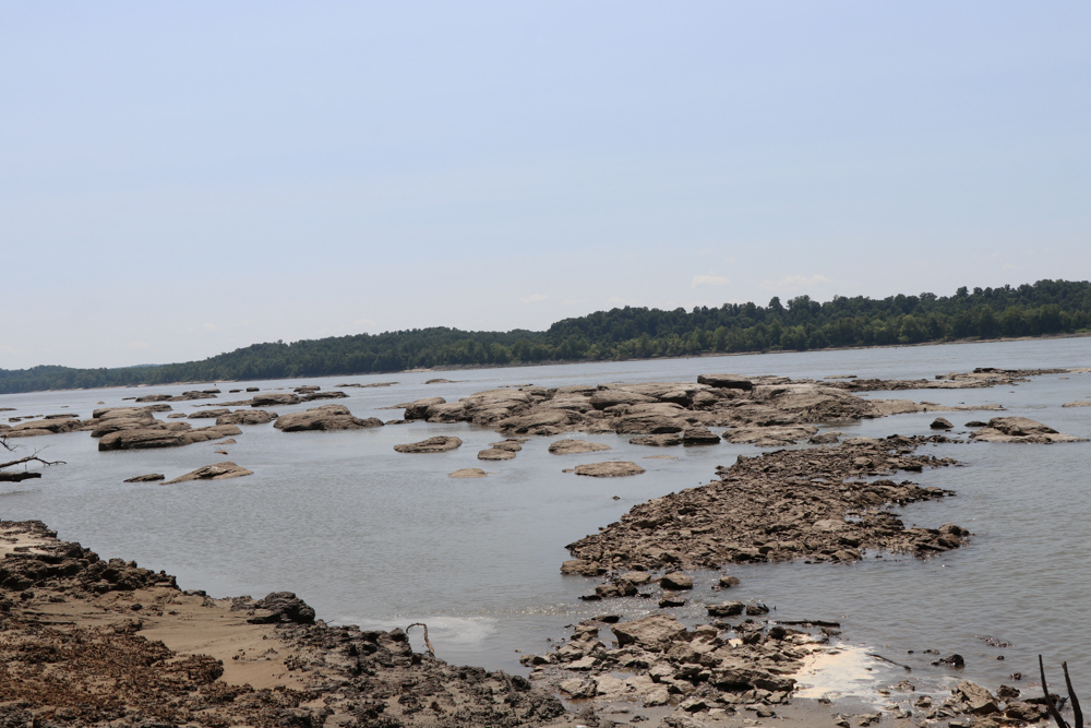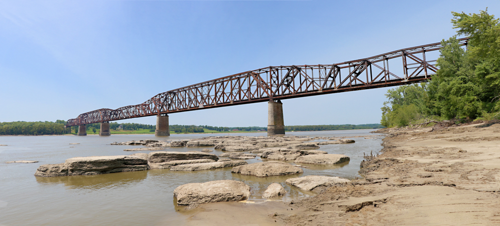 You can still see the chain of sunken rocks as referenced by Mark Twain. "Thebes, at the head of the Grand Chain, and Commerce at the foot of it, were towns easily rememerable, as they had not undergone conspicuous alteration. Nor the Chain, either --in the nature of things; for it is a chain of sunken rocks admirably arranged to capture and kill steamboats on bad nights. A good many steamboat corpses lie buried there, out of sight; among the rest my first friend the "Paul Jones;" she knocked her bottom out, and went down like a pot, so Page 277 the historian told me--Uncle Mumford..." -- Mark Twain, Life on the Mississippi, Page 276, 1883 (read book for free)