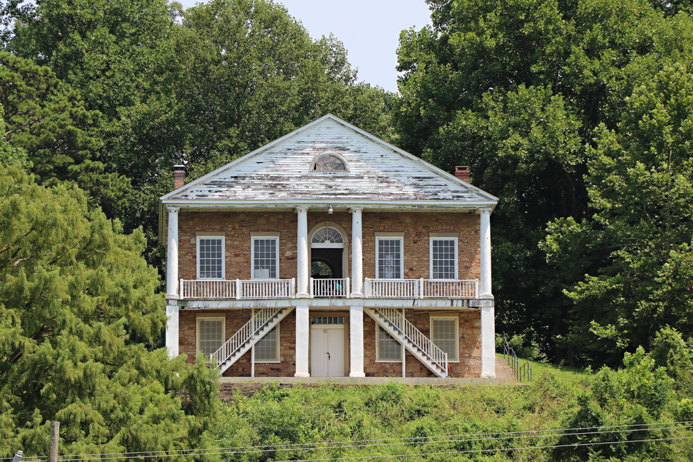 This is the entrance to the courthouse with the Mississippi River in the background. When we were here, the building was not open.