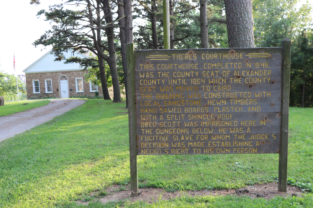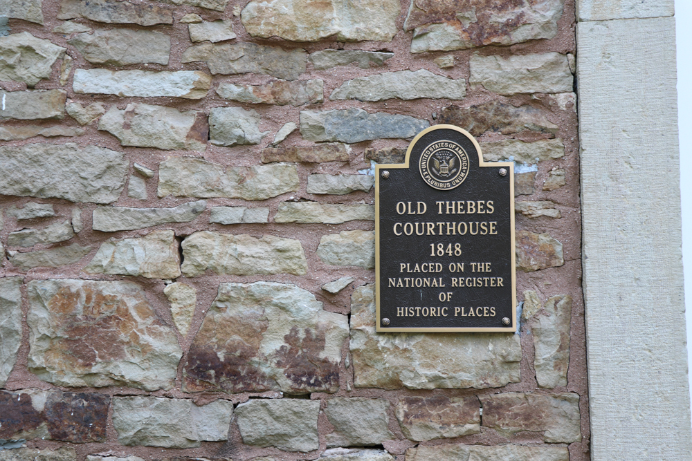 At Thebes you will find the historic Thebes Courthouse, listed on the National Register of Historic Places in 1972. The building is high on a hill and towers over the rest of the town.