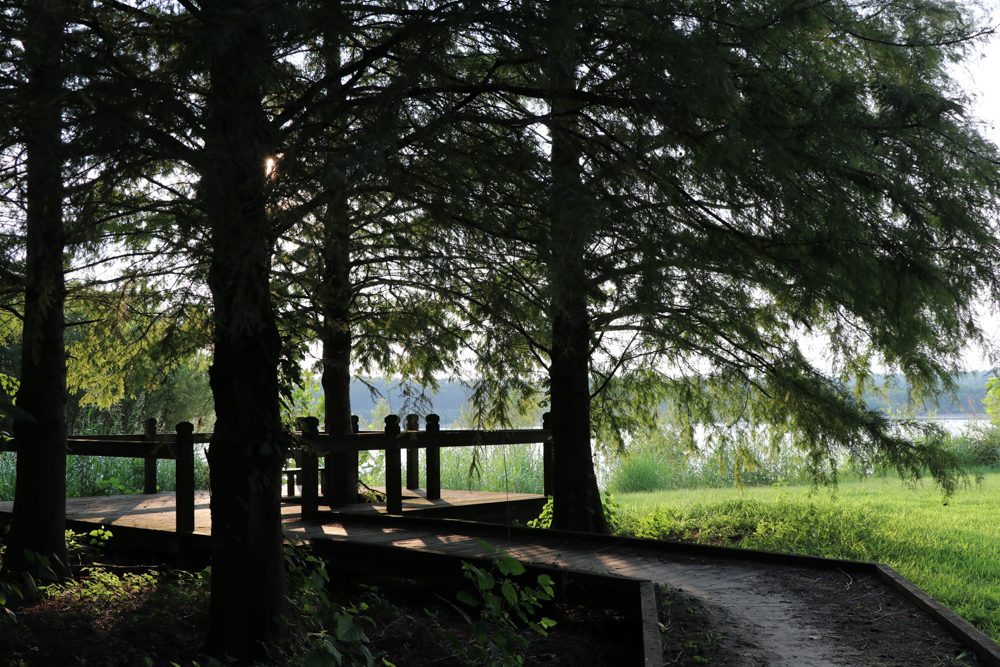 The fir trees and the light at the end of the day was a delight! You can see the Mississippi River in the distance.