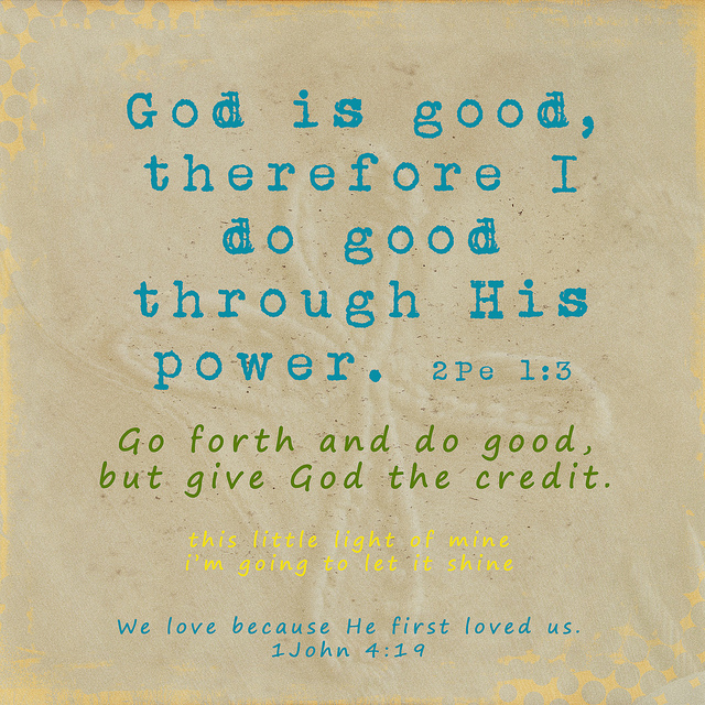 I love the idea of doing good and then turning around and thanking God for flowing through me, for letting His light shine through me, to love other people.