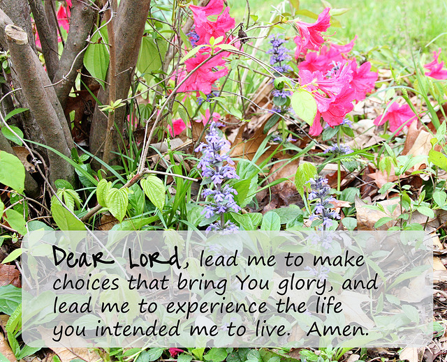 3/26/15 Dear Lord, lead me to make choices that bring You glory, and lead me to experience the life you intended me to live. Amen.