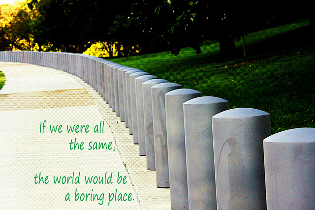 Of course, I have to remind myself at times that if we were all the same, the world would be a boring place. Sometimes I feel so different and out of place; however, that is actually a good thing!