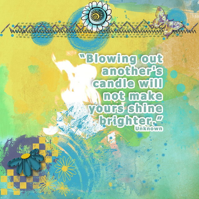 5/14/15 Lord, sometimes I feel as if others are trying to blow out my candle, so to speak, to bring me down, rather than build me up, just because they are jealous of me. Turning out one light does not make the remaining light shine any brighter. It shines the same amount of light. I always feel regular, average, no different than others, not as good as others, and just a little 'ol me. It sure does hurt deep down inside when they put me on a pedestal in their own minds and then feel the need to knock me down from that pedestal! Ouch! That's a lot of shoving, first up, and then down! Unhappy people make me unhappy. Help me take this to heart God, how it feels when it happens to me, and grow my heart so that jealousy does not consume me until it becomes a sinful action. If I see someone else shining, move my heart and my mouth to build them up and act as the candle wax stem that holds them up for everyone to see! May me and the world learn to be better encouragers.