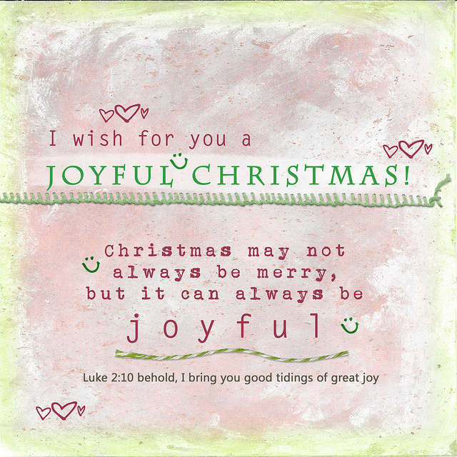 12.17.13 Lord, for many, Christmas may not always be merry and happy, especially with all the busyness and loneliness and scroogeness in the world. Thank you, Lord, for good tidings of great joy brought to us as a little baby bundled with love in a manger, that baby being You. How awesome that when things are not really merry as they should be, we have comfort and hope in the great gift of JOY deep down in our innards.