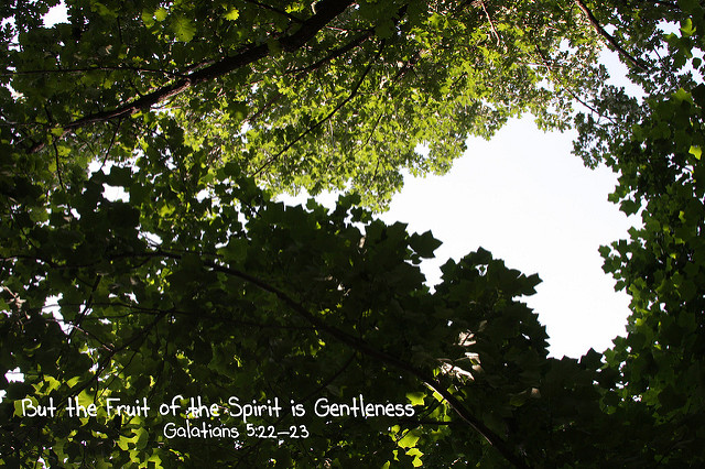 As an analogy, the strong trees could be forceful, but choose to be gentle. They allow the Light of Christ to shine through them with a glimmer of hope. They carry the sound of peace.