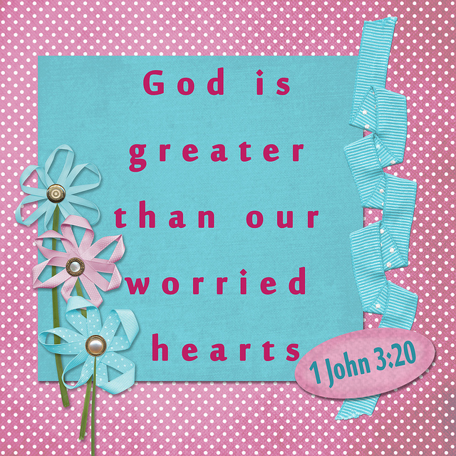9.20.13 Lord, thank you for leading me today to read in 1 John of Your Word. I often condemn myself because I do not think I am doing enough to love other people. I do not measure up. I need to shut down this debilitating self-criticism. I know sometimes the standards I set for myself are higher than what others would expect of me. I often feel I am not getting things done fast enough or doing enough or reaching out enough or or or or . . . Lord, You are greater than my worried heart. You know my heart and my intentions and my efforts. You love me! I am good enough for you! Go away self-conscience and be replaced with God's love.