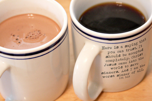 Consider the photo of two mugs of drinks. Both the mug of coffee and the mug of hot chocolate are dark and dirty looking. Let's imagine one is the Christian and one is the non-Christian. How would you tell one from the other? Some might say by the Fruits of the Spirit (the good things they do), but is it always so obvious from the outward appearance?