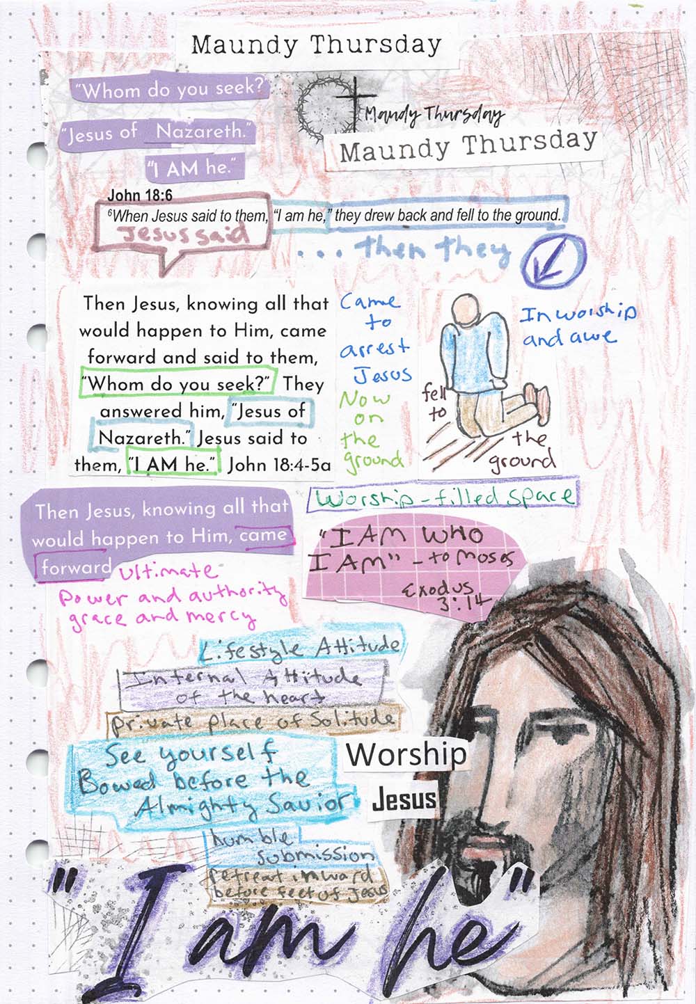 I can imagine in my mind a battle of the social classes from a 1950's high school gathered about ready for a fight, something like in the movie Grease. Judas was with the wrong side. There is no sitting on the fence with Jesus. You are either with Him or against Him. Judas had switched sides as John 18:5 points out. With weapons in hand, they were there to fight, but Jesus was not there to fight. When Jesus said "I am He" the people moved backwards and then fell to the ground. This is significant because "I Am" is the Yahweh of the Old Testament. Jesus is present in the Old Testament. The Greek word of "Ego eimi" is translated as "I Am" or "It is I." Exodus 3:14 God said to Moses, “ I AM WHO I AM.” And he said, “Say this to the people of Israel: ‘ I AM has sent me to you.”