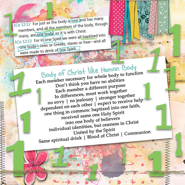 7/25/15 I remembered when underlining the words in the verse there was a repetition of the word "one" which I felt drawn to. So I started by adding one of the characters of "one" (that's a tongue twister!) and when I was choosing the font, I realized how many different ways you could write the word "one!" Wow! Some were were skinny and some fat, just like people. Some were smaller and some larger. Some straight up and down, some leaning. Some straight and some curvy.