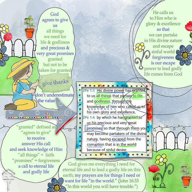 Then I started to type "God gives" and thought for a moment and realized that "gives" might not be an actual synonym to "granted," so I looked it up! Granted is defined as "agrees to give."! Ohhhhhh! That put a whole new light on things! Of course! God agrees to give us what we need for eternal life and godly life, but we first must do something. Yep. We must first receive His faith! Oh, yeah! And then from the verse, we receive by answering His "call" and seeking "knowledge of Him." It's amazing how when I am thinking the words from the verses pop right out at me and fall together.