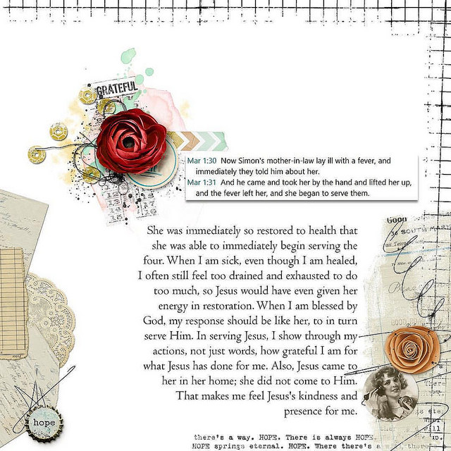 She was immediately so restored to health that she was able to immediately begin serving the four. When I am sick, even though I am healed, I often still feel too drained and exhausted to do too much, so Jesus would have even given her energy in restoration. When I am blessed by God, my response should be like her, to in turn serve Him. In serving Jesus, I show through my actions, not just words, how grateful I am for what Jesus has done for me. Also, Jesus came to her in her home; she did not come to Him. That makes me feel Jesus's kindness and presence for me.