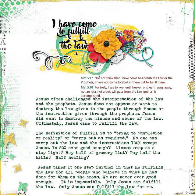 Only Jesus can fulfill the law for me. Jesus never intended for us to be bound by the Old Testament food laws or any other Old Testament law. In Acts 10:9-16 Peter has a rooftop vision regarding the unclean laws. We are freed from the old law, but we are bound by the new law of the New Testament: love.