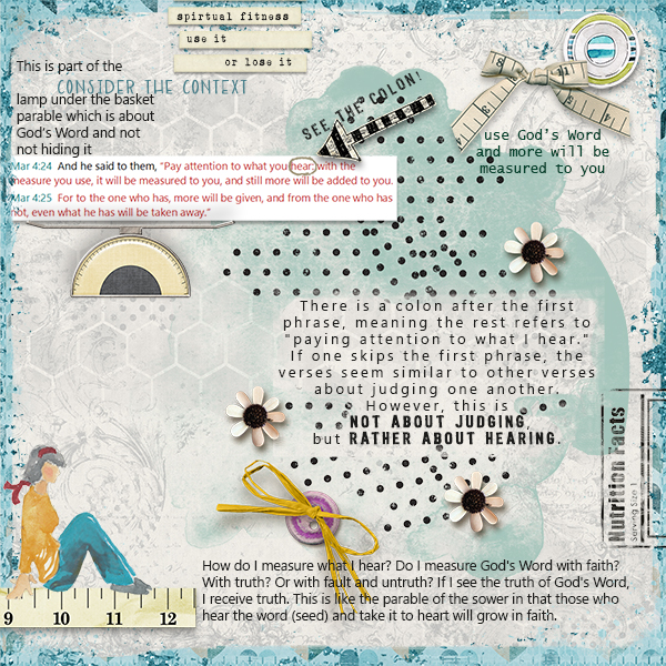 Jesus continued, "Pay attention to what you hear: with the measure you use, it will be measured to you, and still more will be added to you. For to the one who has, more will be given, and from the one who has not, even what he has will be taken away." There is a colon after the first phrase, meaning the rest refers to "paying attention to what I hear." If one skips the first phrase, the verses seem similar to other verses about judging one another. However, this is not about judging, but rather about hearing. How do I measure what I hear? Do I measure God's Word with faith? With truth? Or with fault and untruth? If I see the truth of God's Word, I receive truth. This describes the parable of the sower in that those who hear the word (seed) and take it to heart will grow in faith. To remain spiritually fit, use it or lose it. God's Word is served up with the necessary nutrients to not only sustain faith, but grow it.