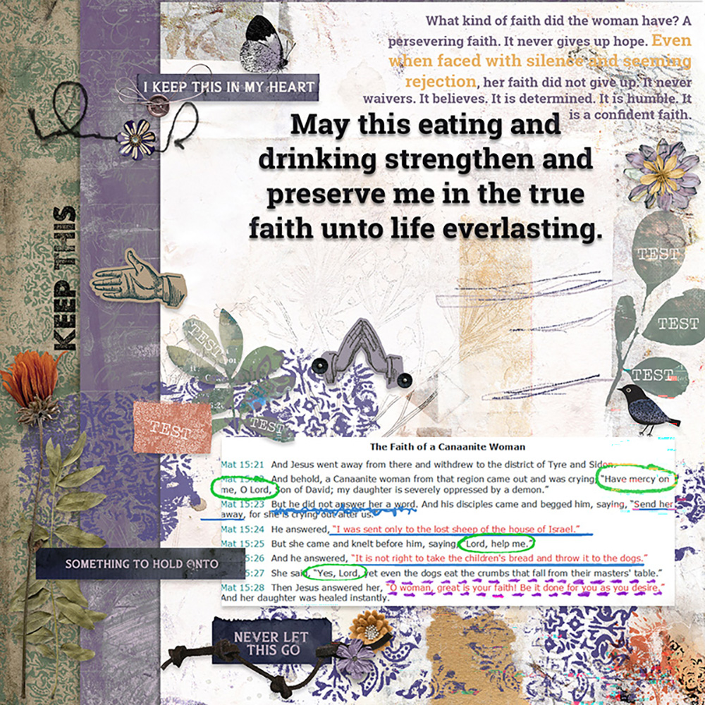 First, I pray that Jesus never tests me with silence and rejection, but if He does, that I have persevering faith like this woman. I love the words said by Pastor after communion, "May the true body and true blood of our Lord Jesus Christ strengthen and preserve you in body and soul to life everlasting. Depart in peace. Amen." I always focus on praying that God strengthen and preserve my faith after communion. May this eating and drinking strengthen and preserve me in the true faith unto life everlasting.