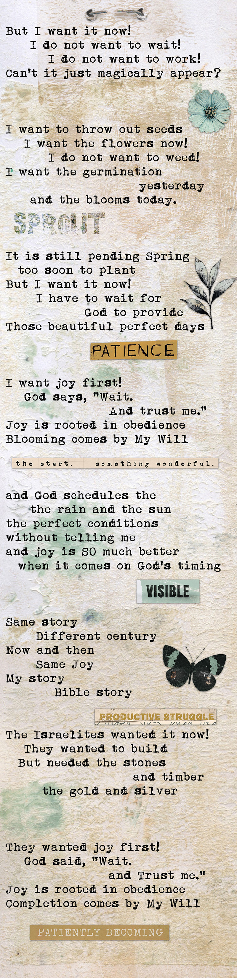Please pray with me. God! Help me to trust You and be patient and wait on Your perfect timing and provisions. Amen.
