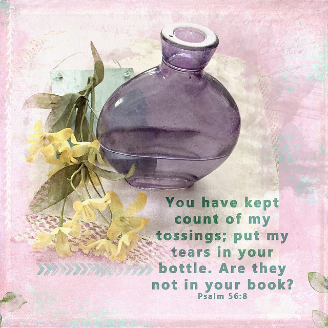 Wow! He loves me that much that he cares enough to count my tossings in bed at night, gather my tears drop by drop and put them in a bottle, and kept the purposes for my tears journeled in a book. I just love how that makes me feel.