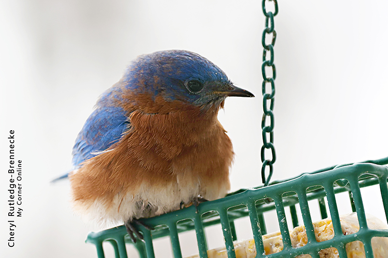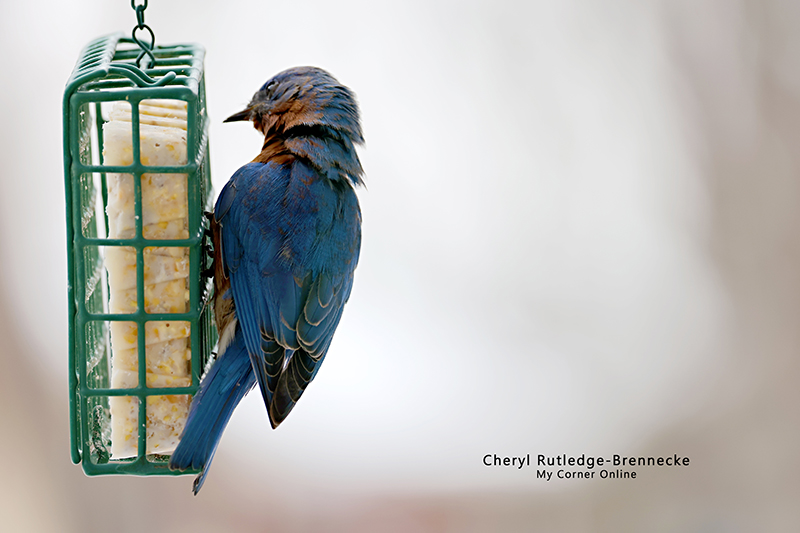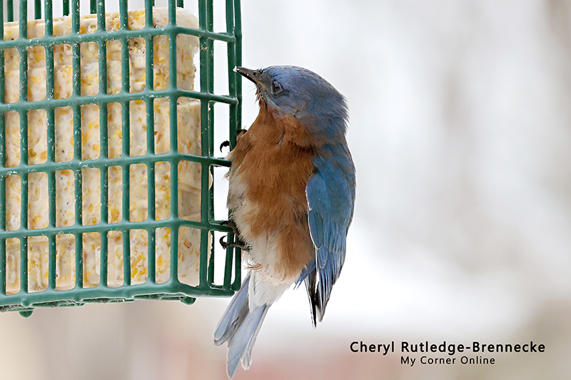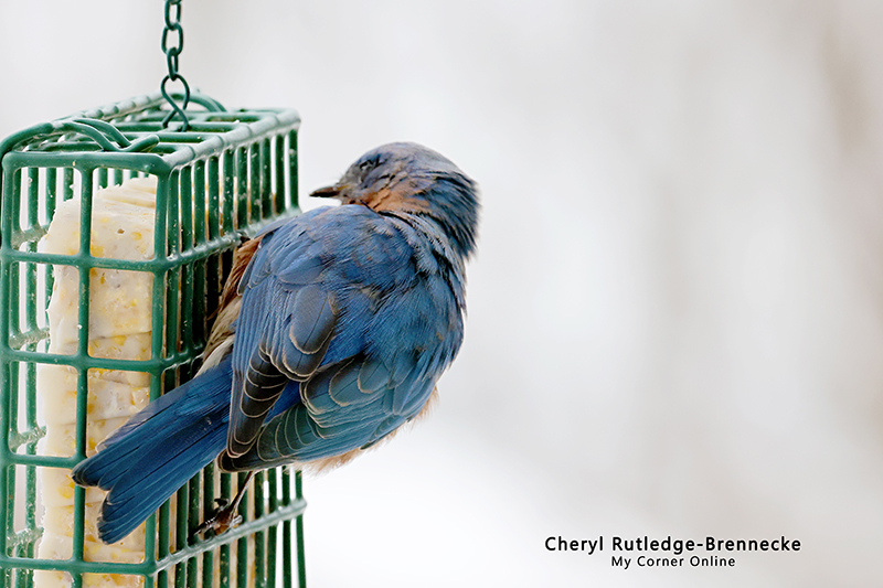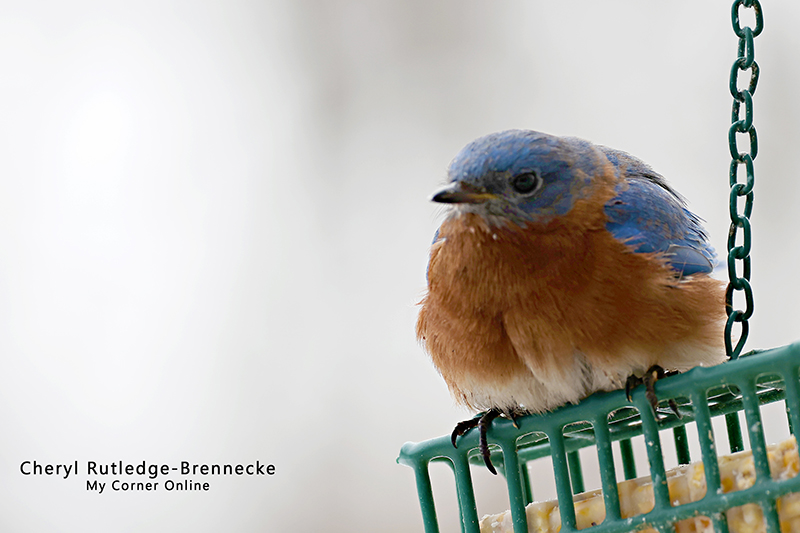 I am enjoying Winter bird watching at the window of our feeders. Who needs television? I have noted 11 types of birds and have gotten photos of all but one. I thought I would share some of the photos, one in each post. Would you enjoy that? I have had a lot of Bluebird this year than ever before. They make my heart sing, especially when I see them fluff all up and make themselves look like they have on a big fur coat. This process is called "piloerection." The bluebirds create air pockets between their feathers which insulates them from the chilly temps and cold winds. I captured photos of mommas, pappas, and the children. The whole family is here! (February 18, 2025)