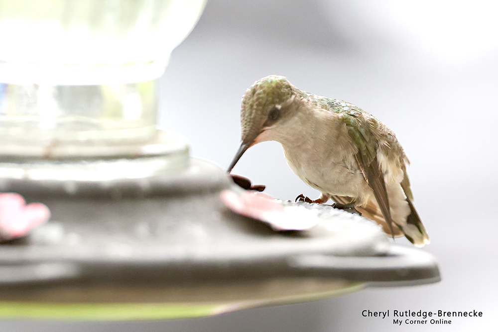 I had started a bird journal and this page was from the journal. It makes me laugh as it relates to the Woodpecker, Downy page. Go see. I wrote on July 18, 2017, "Beautifully out of place a hummingbird at the seed feeder watching the woodpecker."