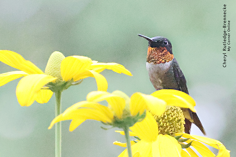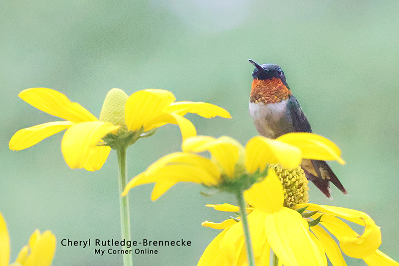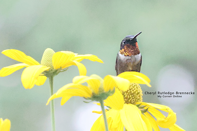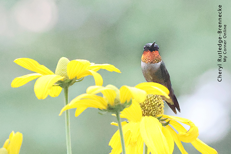 The ruby-throated hummingbird is so tiny yet demands so much of our time and attention. In just a flick of the head his neck is forever changing colors as the light hits it creating new shadows and shades. He stands guard nearby the feeder like a good family man. Surely he knows we are watching as the family flits in and around and about the feeder. Is that him looking back at me? Oh then there’s the rawkus playful bantering coming forth from the long beaks. Anything in God’s creation that captures the curiosity of the eye so well surely sings out all Glory to God. July 17, 2021