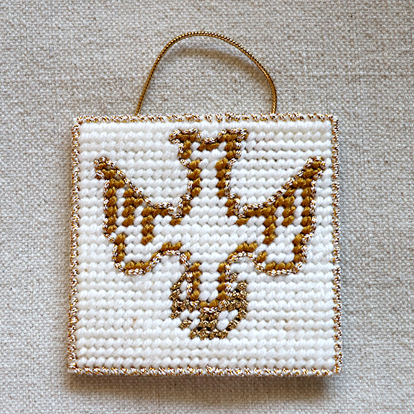 The dove reminds us of the Holy Spirit. The Holy Spirit descended upon Jesus at his baptism in the form of a dove. To descend means to come down. This dove a coming down too. That reminds us that the Holy Spirit comes from heaven down , to earth to live among us. The circle the dove is shown with is the nimbus we saw earlier with the hand. It is the symbol of sanctity, or holiness. The three