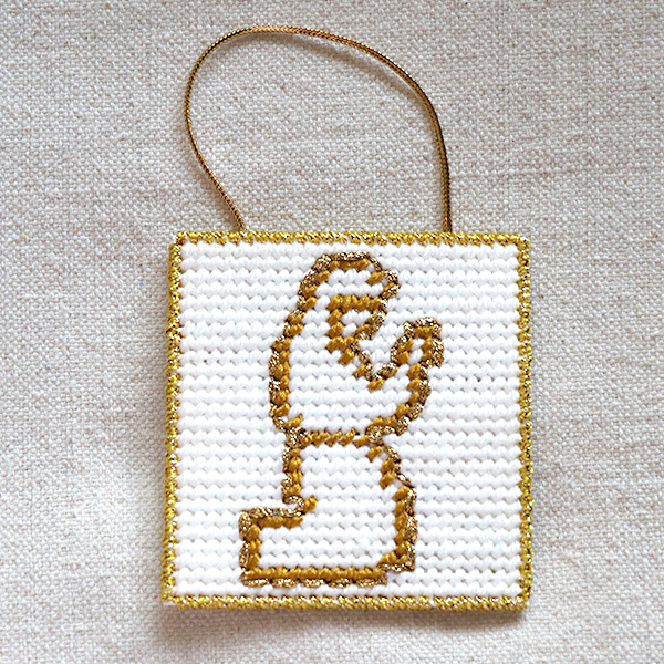 This Chrismon of the kneeling servant is a picture of ourselves. One way of worshiping is to kneel In prayer.