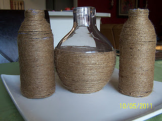 I have seen this before and I don't know what it is about a little jute applied with a hot glue gun, but it always draws my attention. I would love to do this project some day.