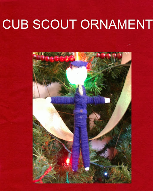 Here's an ornament the cub scout den made one year. It is made with spoons wrapped with yarn. The spoon for the hands and feet are broken off, I believe. The hat is a piece of felt glued on and the face is drawn on with magic markers. The tie is pieces of frayed yarn tucked under the blue yarn. Certain this could be adapted to a variety of uniforms.
