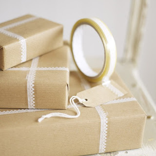 There is just something about a prettily wrapped simple gift that I love. Of course, we would think about tying a lacy ribbon around a gift, but look how clean and pretty it looks stuck on with double-sided tape! The tag is made to match as well.