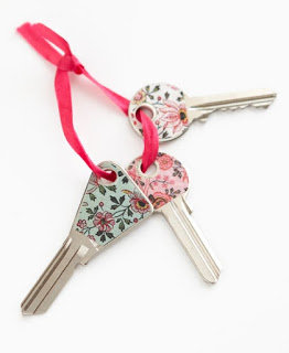 This! is something I want to do! I really need to do it just to put some happy in my day! Isn't it so cute and simple? I have a need to mark the key to my sons house so I can at least find it from the others. Of course, I have that big car key fob that messes with the bunch. I wonder if I can put washi tape on it too? Who needs a metal ring for a key ring? This simple ribbon is so cute! My friend has hers on a piece of lace and I love it.