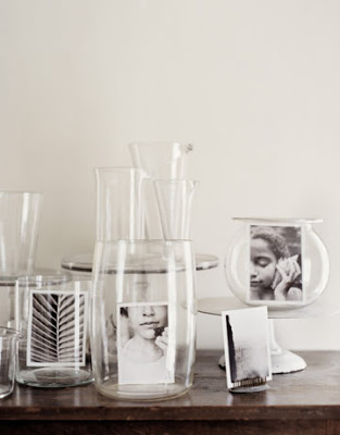 I saw this and was instantly in love! Why don't I think of such things? I love photographs. How many see through glasses or vases do I have around the house already that I could just set out and put a photo in? I could even dig out old photos, scan them, and reprint them. No cost decorating with a punch!