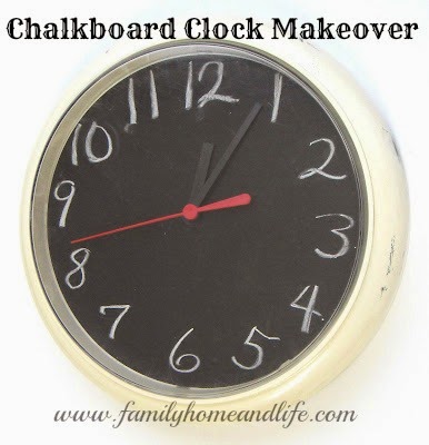 This same blogger made a chalk clock. There is chalk paint that can be purchased (I love using it!) or even some chalk vynal