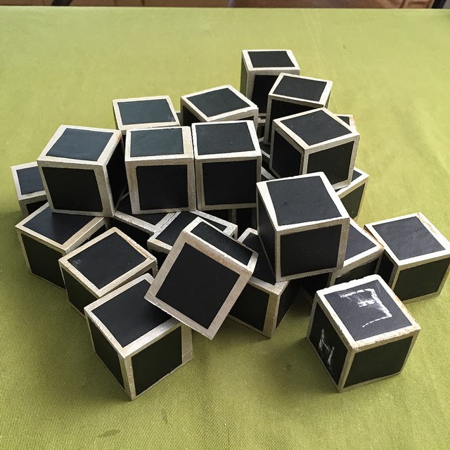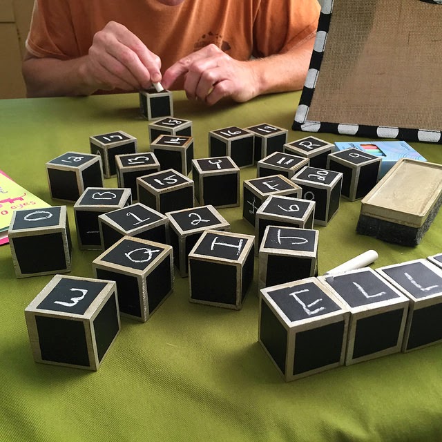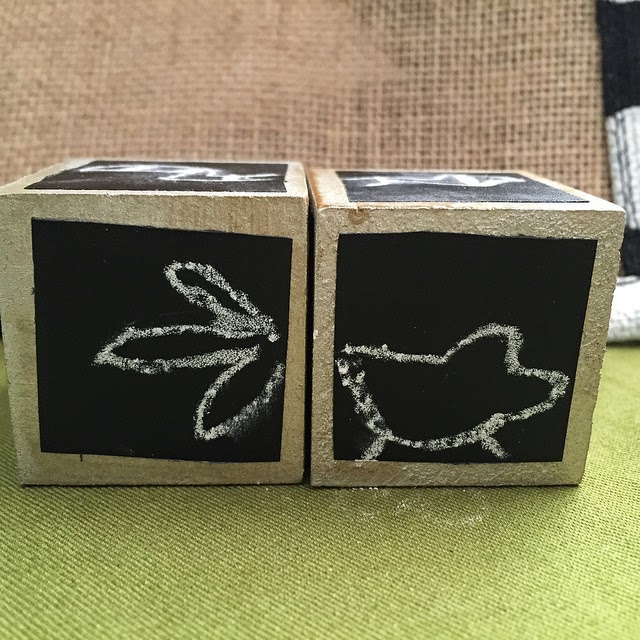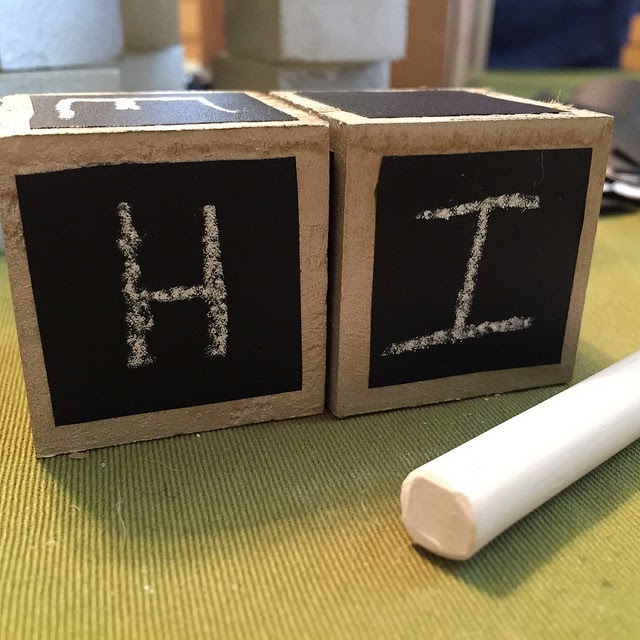 I like the idea of chalk based blocks. That way we can write whatever we want on the blocks. I remember having trouble finding just the right letters and we did not like the color combinations. These are much more decorative friendly.