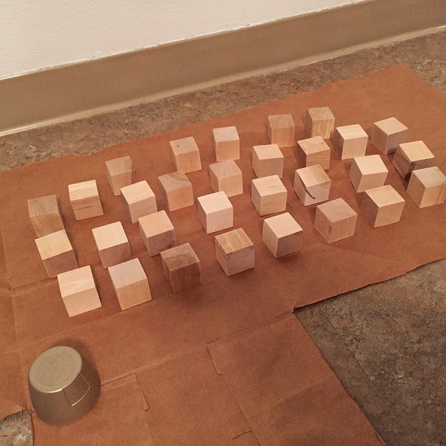 Then I wrote letters on at least one side of every block to give her an idea of how to use the blocks.