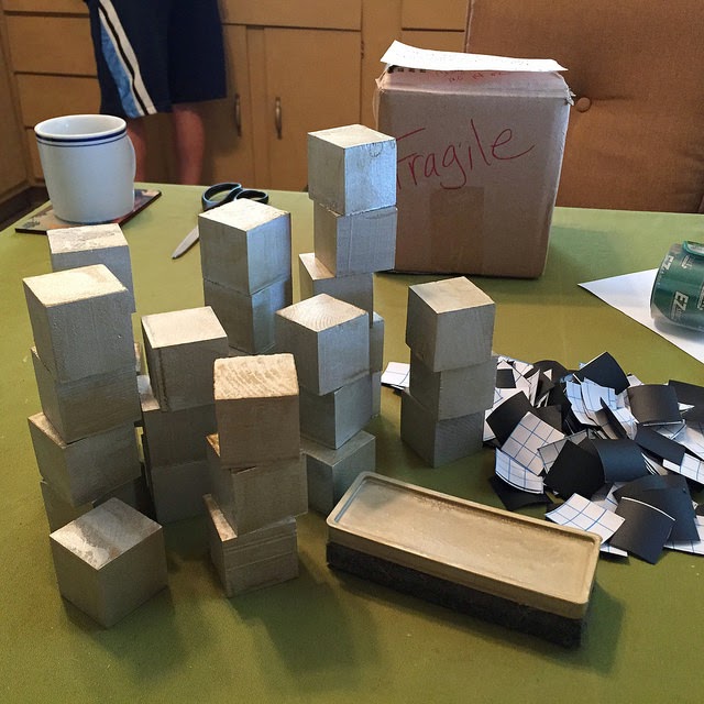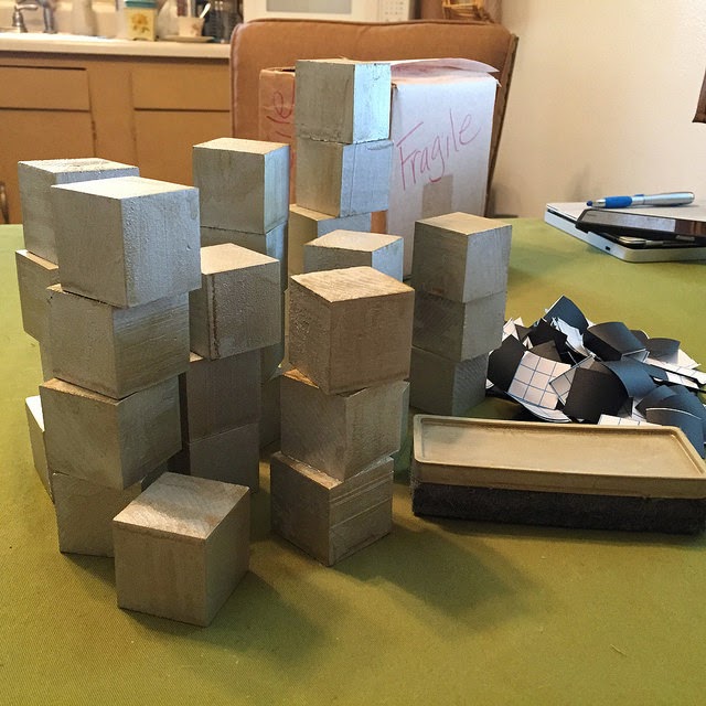 I was glad that I decided to spray paint the erasure to match the blocks. It was a bright green and did not really go well.