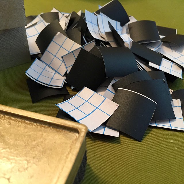 Hubby was not too skilled at taking off the backing, so I put most of the square pieces on.
