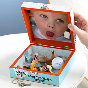 Children love photos of themselves! Especially silly ones or beautiful ones. What a cute gift idea to use digital scrapbooking materials and photos to decorate a box as a gift.