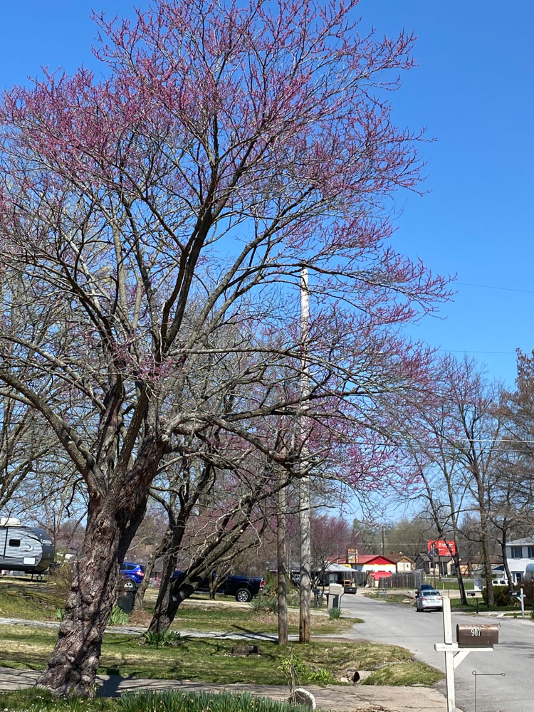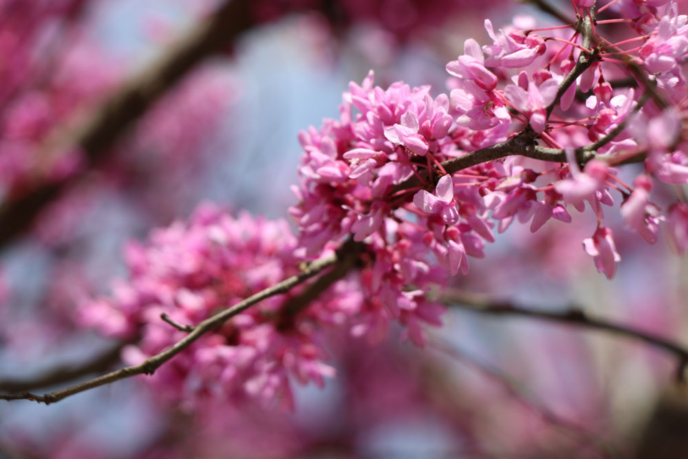 Redbuds are ramiflorous which is a fun word that means the flowers are formed on leafless, old branches. Flowers usually form on stems on the branches.