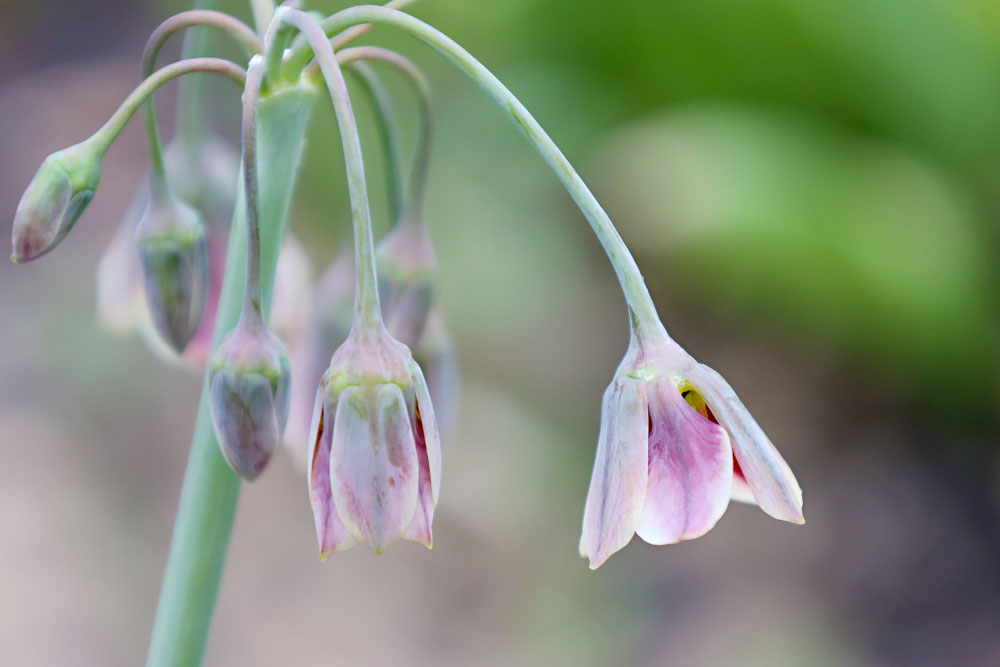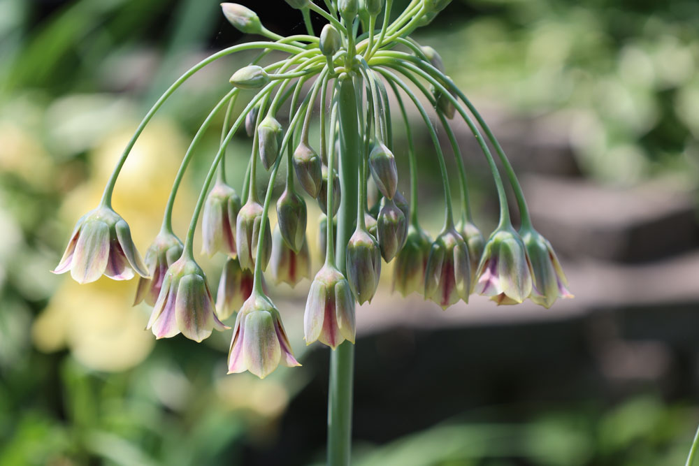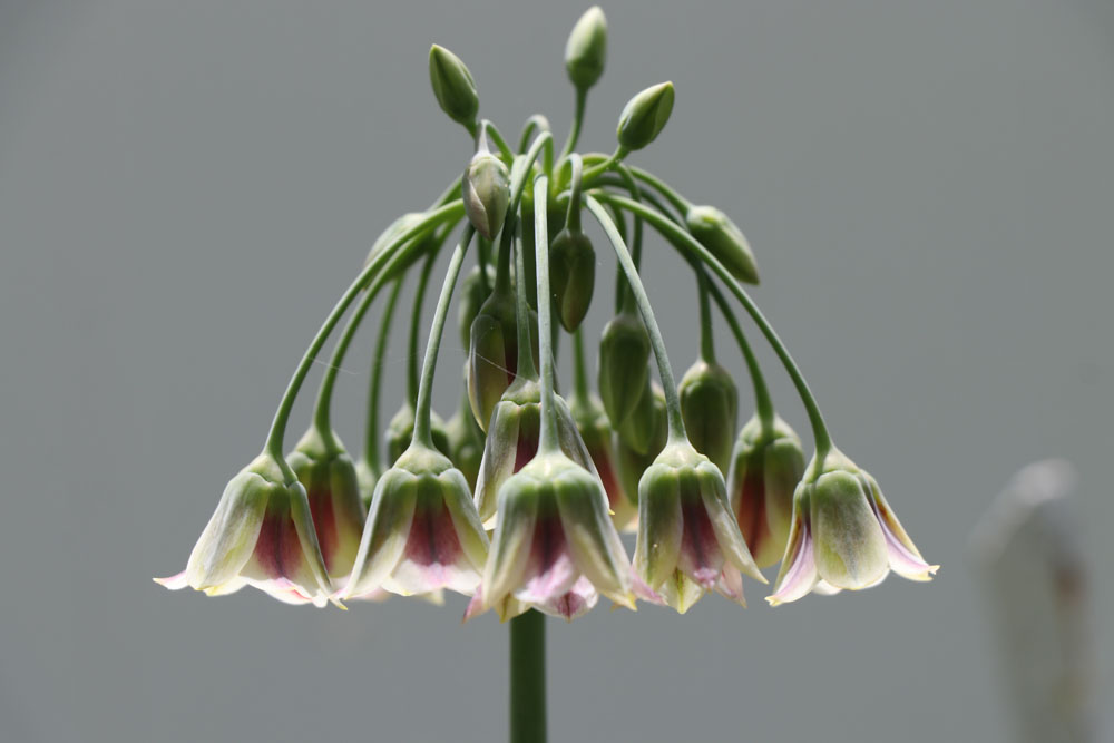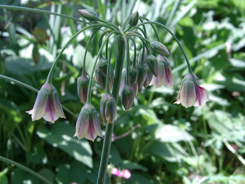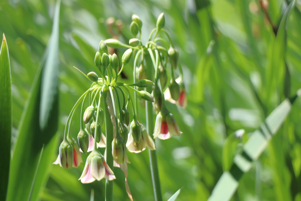 Nectaroscordum (nek-ta-row-SKOR-dum) means nectar-garlic (Greek “nektar” for nectar and “skordon” for garlic) because when it is bruised it smells like garlic, or so they say! Apparently it can make you cry like an onion when you cut it.