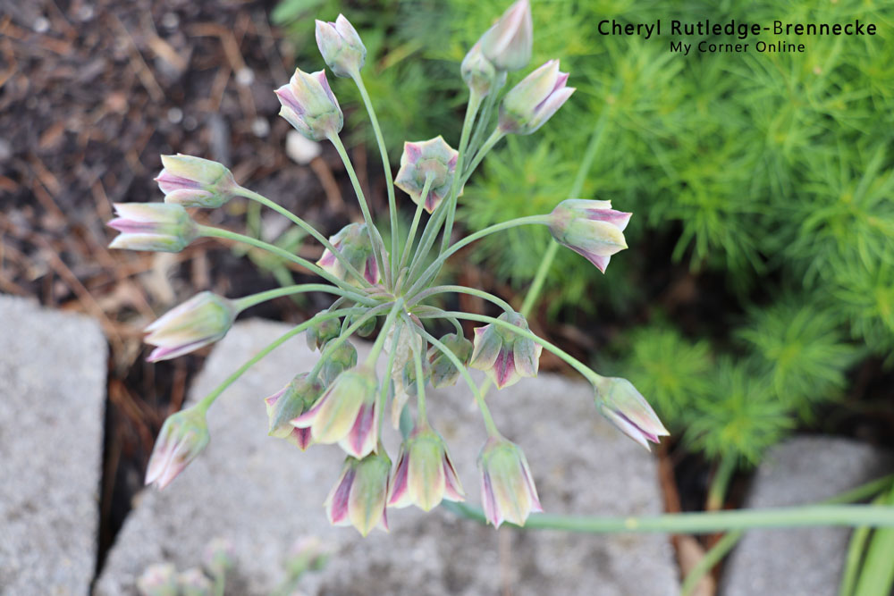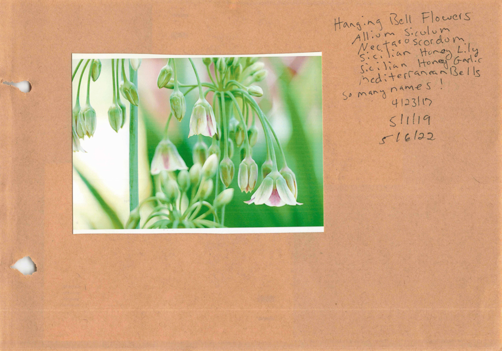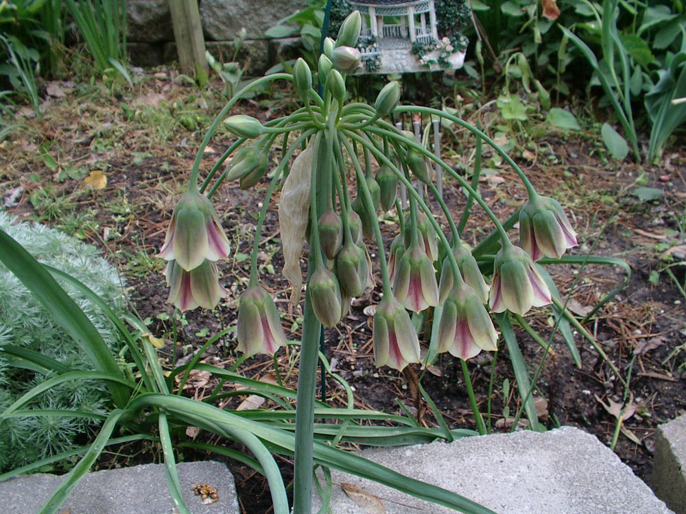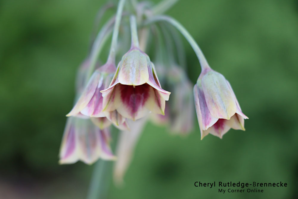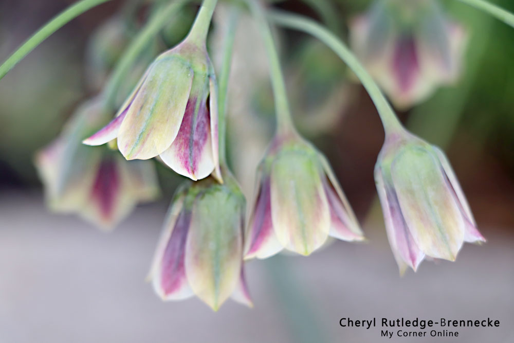 Nectaroscordum (nek-ta-row-SKOR-dum) means nectar-garlic (Greek “nektar” for nectar and “skordon” for garlic) because when it is bruised it smells like garlic, or so they say! Apparently it can make you cry like an onion when you cut it.