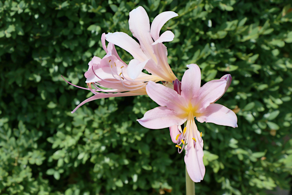 This plant has SO many names! I have always called them Surprise Lily. The second most common name is Naked Ladies. Other names include Spider Lady, Pink Flamingo, Resurrection Lily, Hurricane Lily, Magic Lily, Mystery Lily, Sesame Lily, August Lily, and Upstart. It is such a unique plant that folks are inspired to call it lots of silly names.