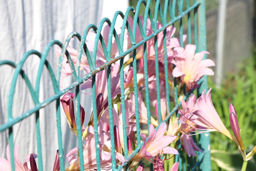 These photos of the surprise lily with my old fence gate are some of my favorite. I love the color combination.
