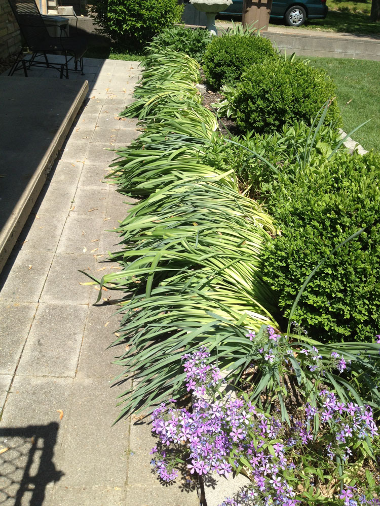 I like that I took photos of them laying down along the walkway because I did this every single year and waiting for them to die back and never really did enjoy it much, but it worked.