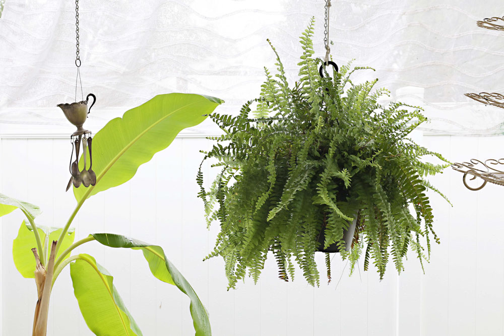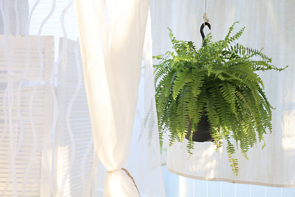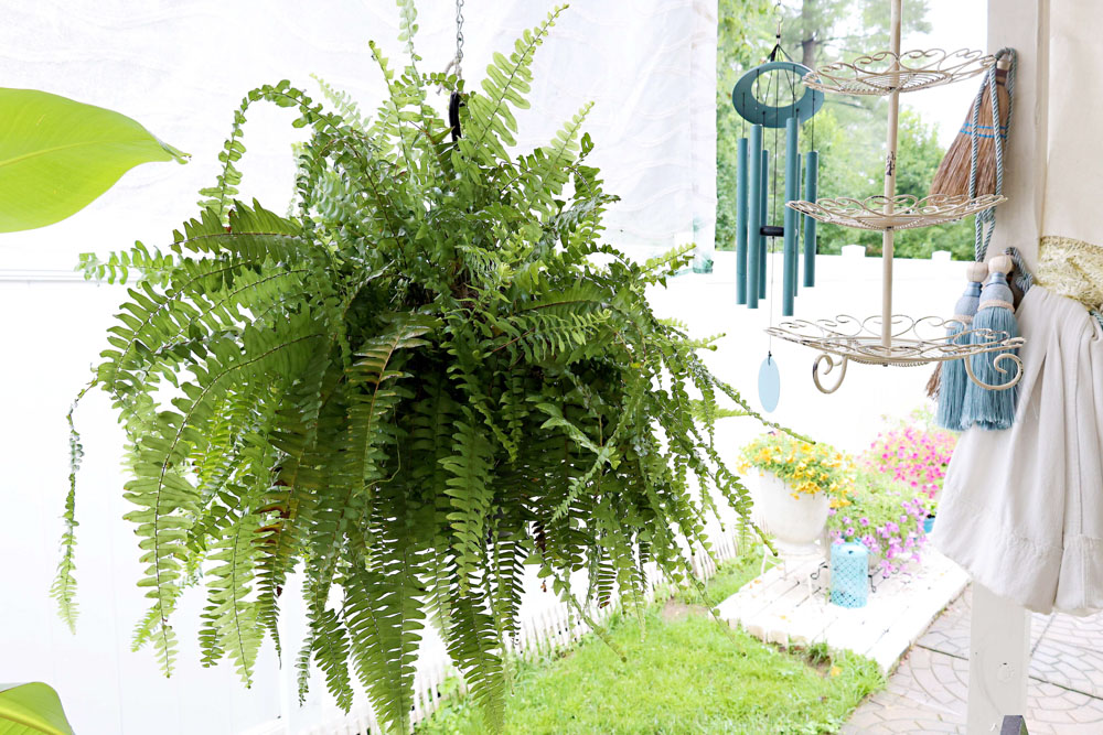 Maybe the best place for the fern indoors is the bathroom. I read a suggestion to set them in a base of wet pebbles to help. Watering twice a week helps indoors, as well as misting in between. I really do not want to work that hard to grow a fern indoors!
