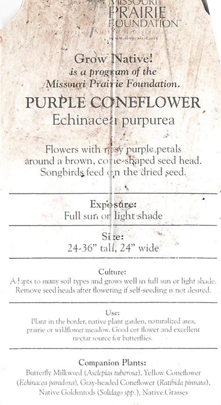 The above and the below were both purchased in 2020. Since I only have one Purple Coneflower left in my garden, it is obvious that I have purchased many over the years and they are continually pulled as weeds in the Spring. I need to mark them better and learn how to recognize them. Only the one that survived year after year must look like a flower when it comes up in the Spring. The one below is a Glade Coneflower Echinacea Simulata and I do not know enough about the differences between the two species. The Missouri Wildflower Nursery where these plants came from, purchased at the Missouri Conservation Center annual plant sale, says, "Similar to pale-purple coneflower, but more vibrant color & begins blooming a week earlier."